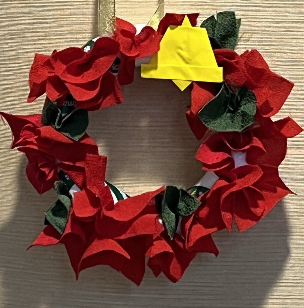 クリスマスのリースを作っていました。
